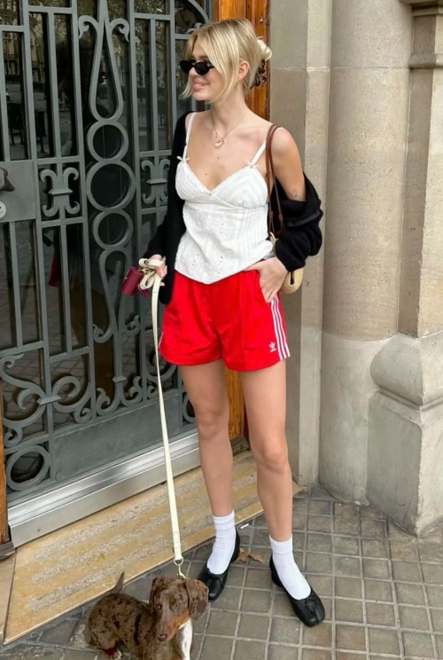 搭配堆堆袜套和芭蕾运动鞋,