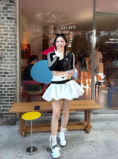 裙子的柔美被鞋子的休闲感中和,