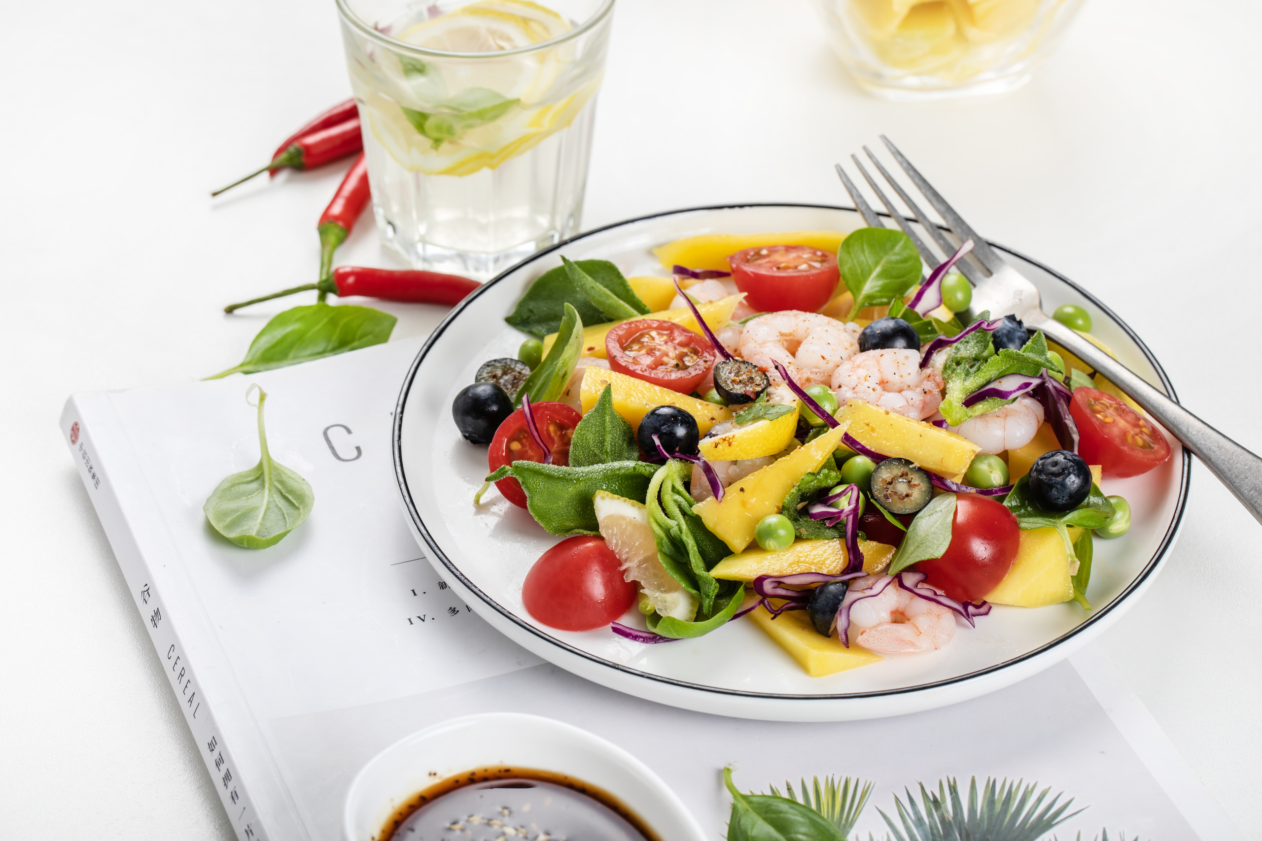 减脂期也要吃点好的!熟芒果的甜糯包裹弹嫩虾仁,浇上由青柠汁、鱼露、小米辣调制的东南亚风味酱汁,撒上烤椰子片和喜欢的时蔬,是好吃到能让人想原地开店的程度。