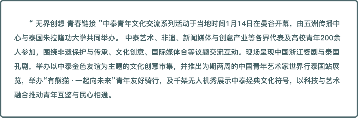 为“无界创想青春链接”中泰青年文化交流系列活动在泰国曼谷市举行,来自中泰政府、文化、新闻媒体、创意产业等各界代表500余人参加开幕式。