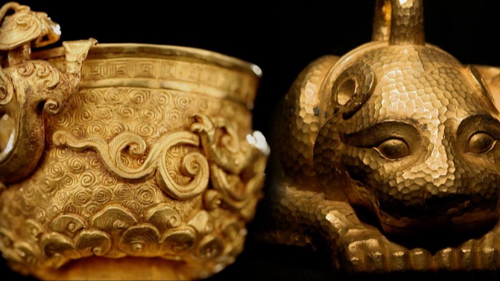 金耳饰由黄金锤揲而成 是古代黄土高原地区特有的